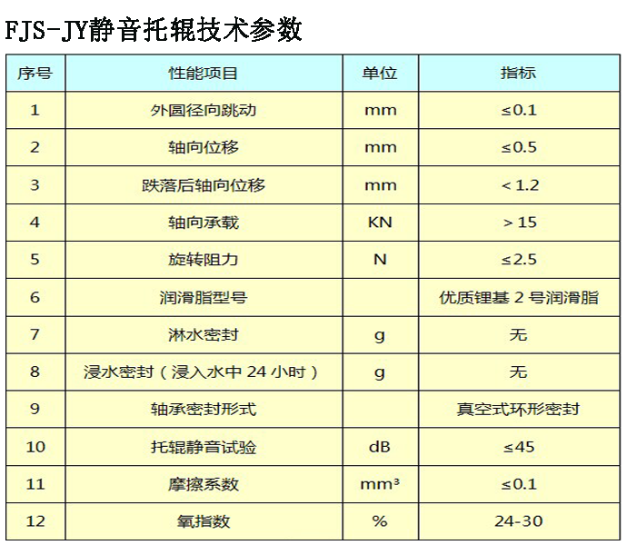 產(chǎn)品簡(jiǎn)介: FJS-JY低噪音托輥,其管體選用優(yōu)質(zhì)改性超高分子量聚乙烯(UHMW-PE)主材料,通過良好的生產(chǎn)加工工藝,使動(dòng)平衡等級(jí)達(dá)到G16(ISO1940)標(biāo)準(zhǔn),運(yùn)行平穩(wěn),U型通風(fēng)槽精細(xì)加工,減少與皮帶的摩擦。結(jié)合華北塑料公司自主研發(fā)的唇邊式消音密封,使帶式輸送機(jī)的噪音降到(達(dá)到)國家標(biāo)準(zhǔn)GB12348以下。